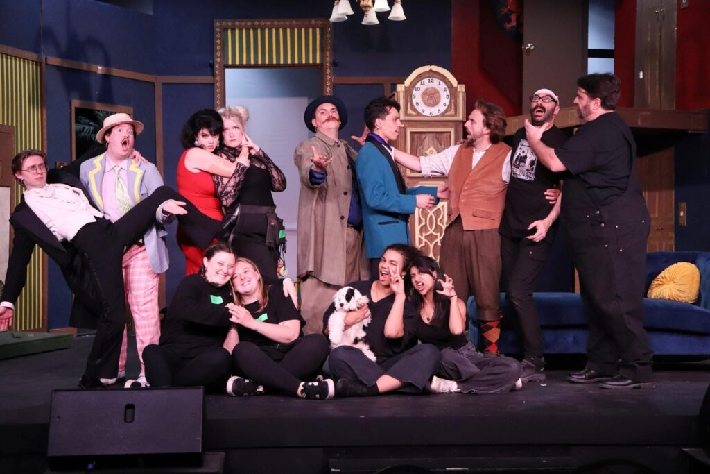 Imagine if British comedy icons French and Saunders or The Mighty Boosh decided to mount an Agatha Christie Hercule Poirot mystery…There, now you’ve got the basic vibe of The Keeton’s latest offering. The Play That Goes Wrong, a madcap mishap of a show-within-a-show similar in theme to Noises Off–in that the audience witness the backstage antics of a fictitious theatre troupe while simultaneously trying to follow the storyline of their attempt to put on a classic murder mystery–The Keeton‘s production of The Play That Goes Wrong is wrapping it’s three week run with shows through Sunday, April 26. As directed by Erin-Grace Bailey, The Play that Goes Wrong is the kind of gleefully unhinged farce that practically dares its audience not to laugh—and then steamrolls them anyway. This production leans hard (sometimes a little too hard) into the chaos but ultimately comes out the other side with a win…even if everything onstage most certainly does not.
